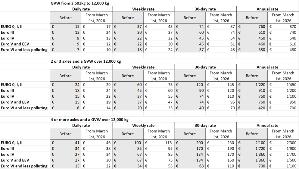 Für Fahrzeugkombinationen mit einem Gesamtgewicht von 3 bis 3,5 Tonnen der Emissionsklasse „Euro 0, I, II“ gelten ab dem 1. Januar 2027 folgende Änderungen: